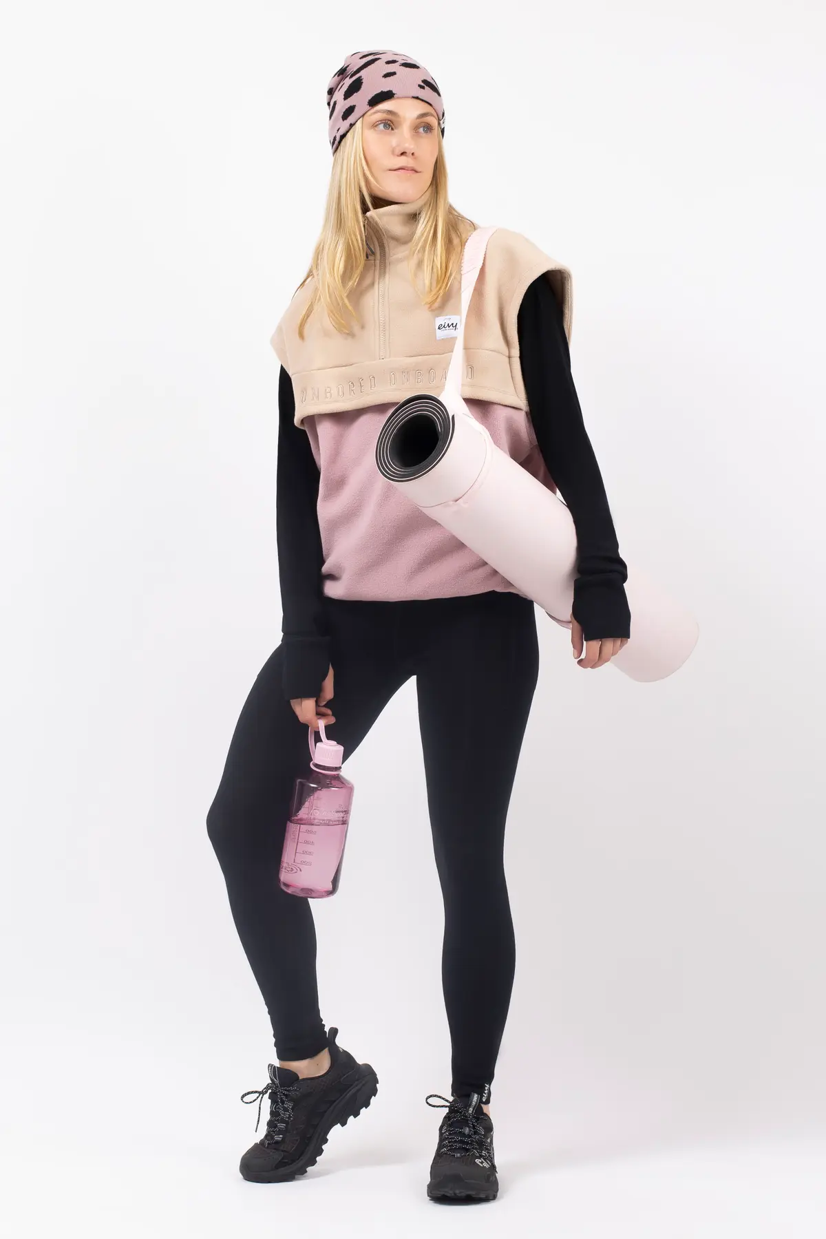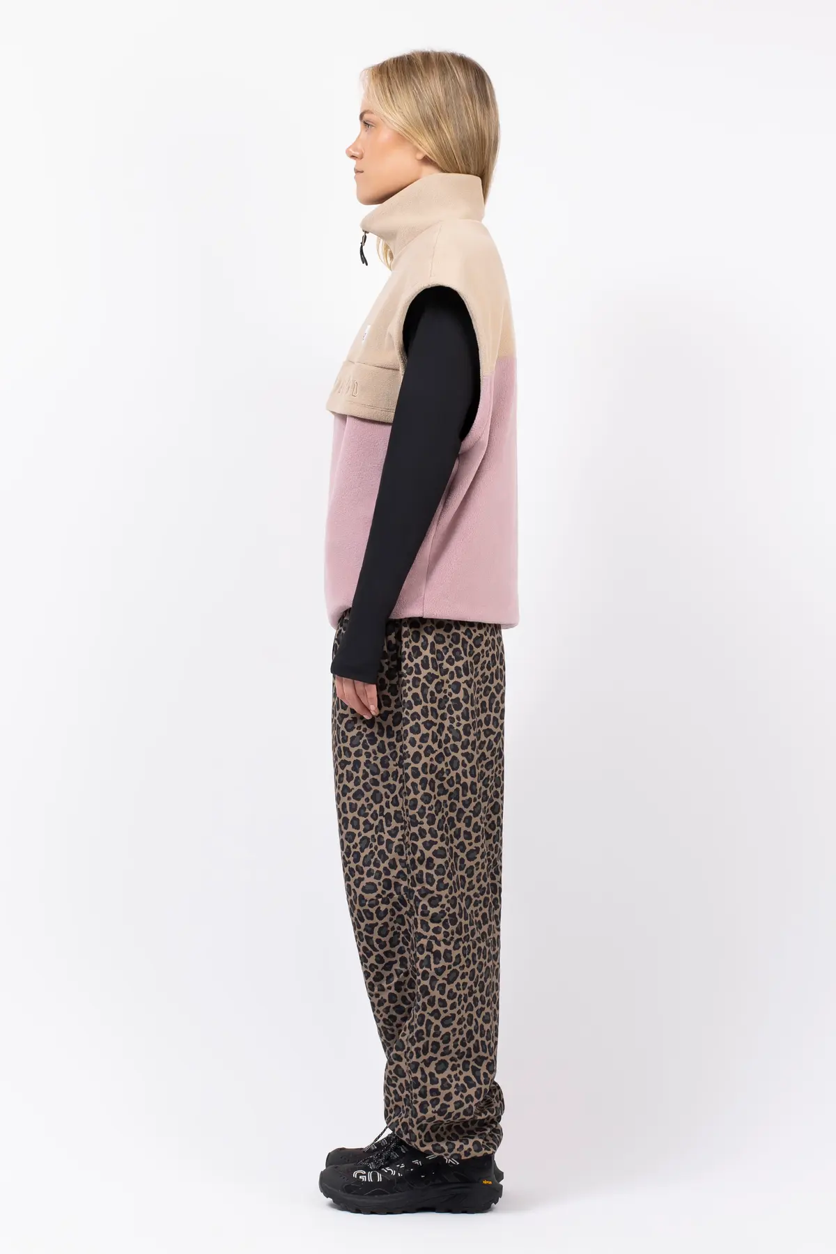 Our popular beige and pink Ball Fleece, now in vest form. With its oversized fit, warm high collar that can be zipped up or down with the YKK® zipper, and the extra-roomy front pocket, this vest is easy to throw on over a tee, hoodie, or base layer. It keeps you warm while keeping your essentials like phone and wallet close and secure, thanks to the zippered pocket — ready for all your adventures.
