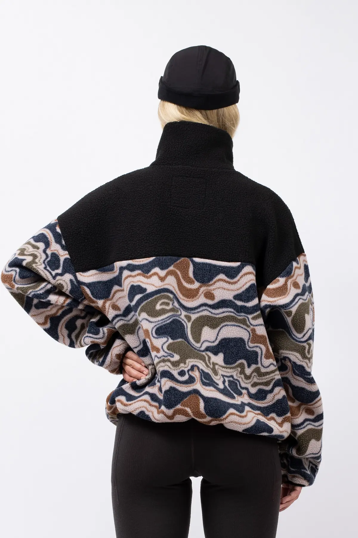Our super popular Ball Fleece is now also available in our super popular Sherpa fabric! A comfortable soft fleece in a slightly oversized fit for a bold look, in a camouflage pattern. The warm collar can be opened and closed thanks to the YKK® zipper, as well as the spacious front pocket.