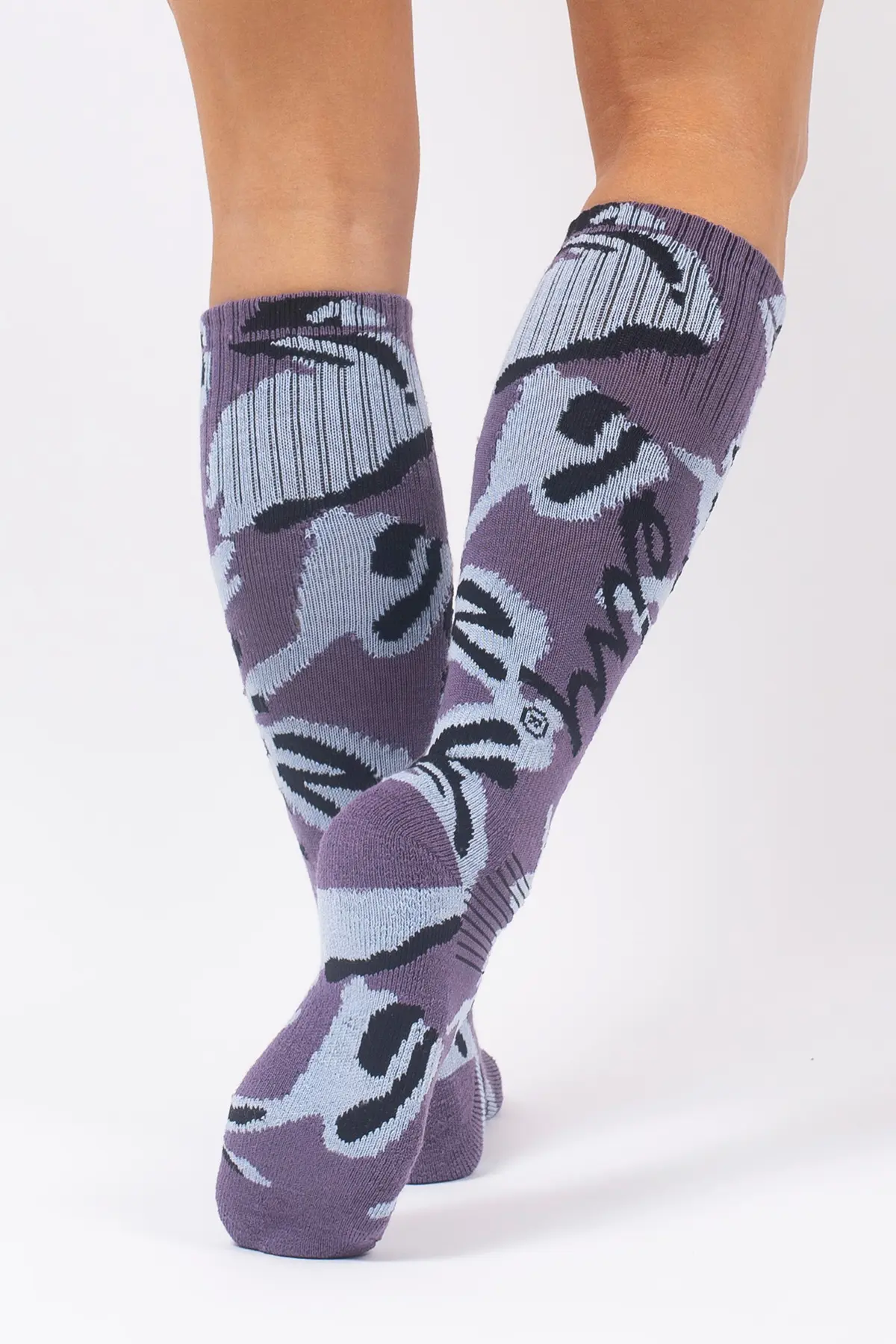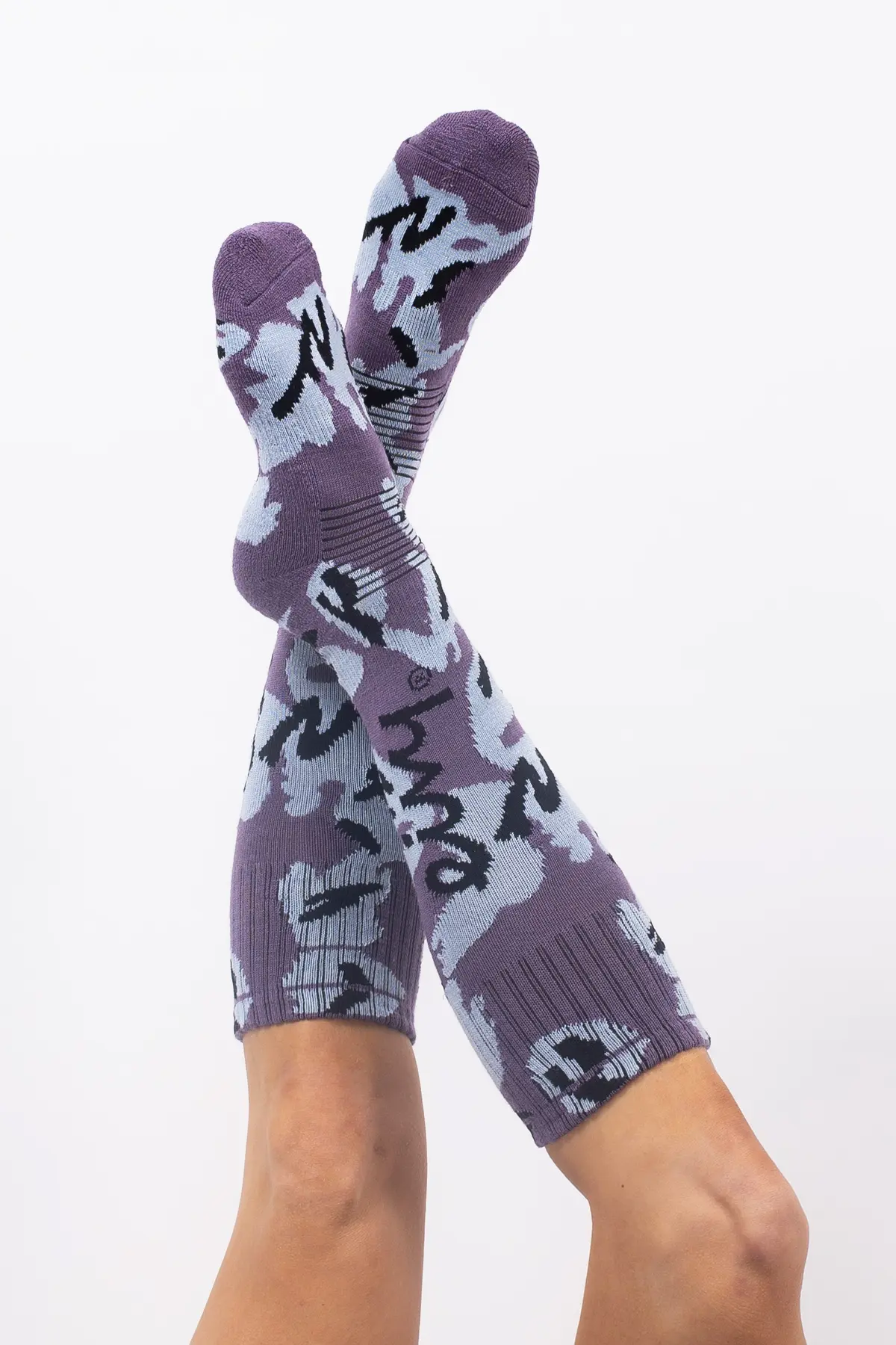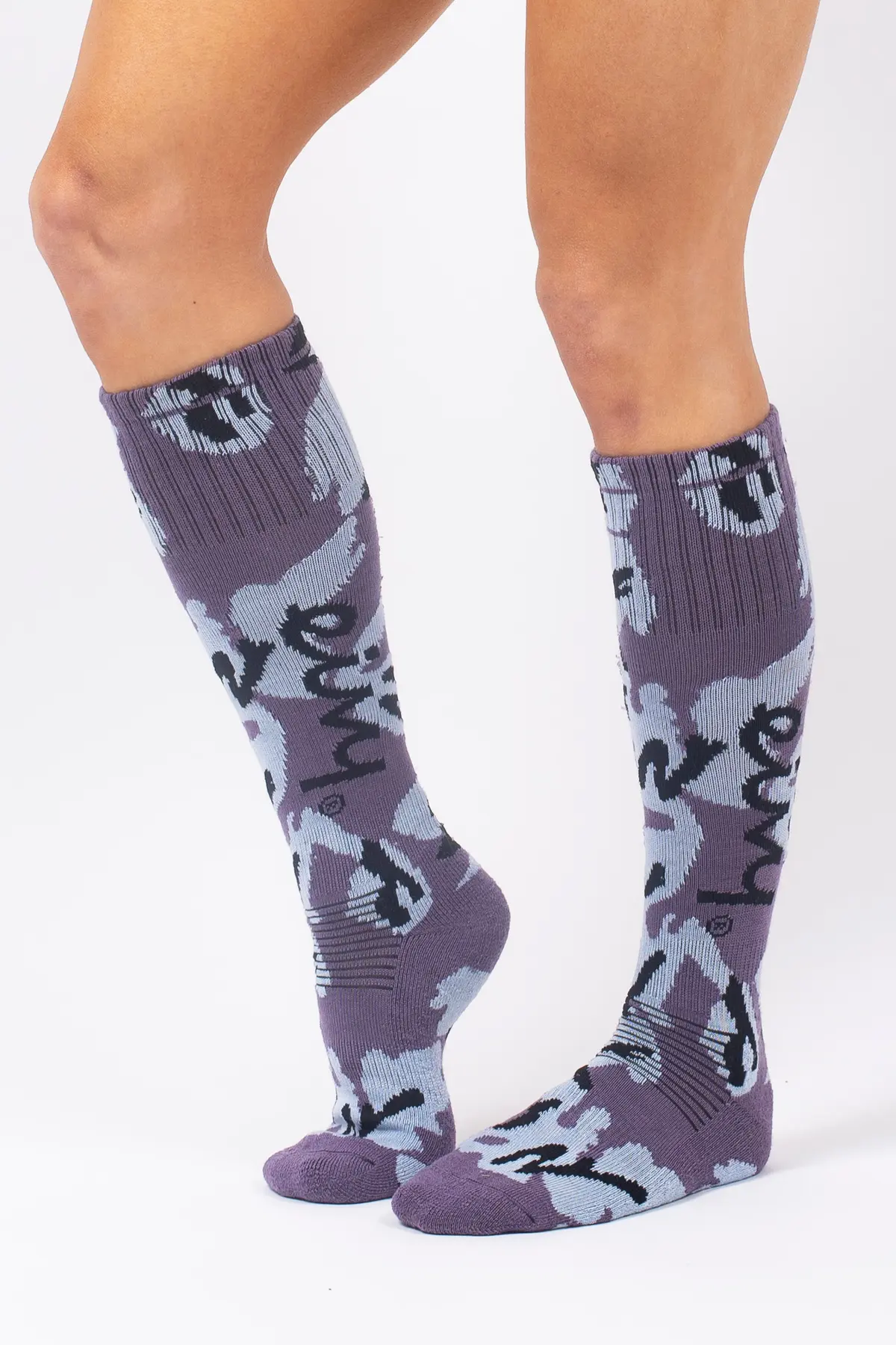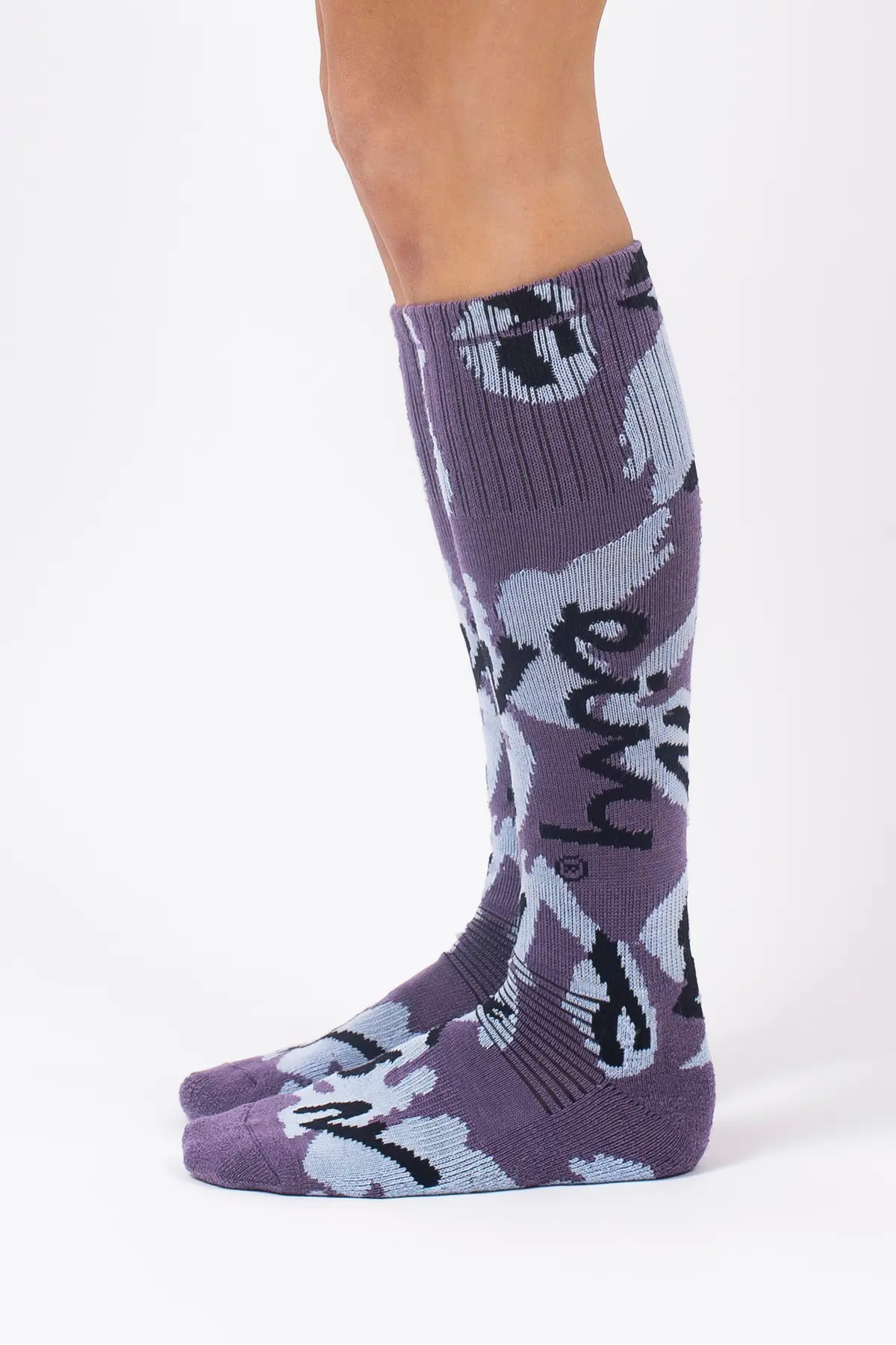 Purple patterned skisock loaded with tech to stop you from freezing in your daily life or in your ski and snowboard boots. The Cheerleader Wool Socks are as versatile as it gets, padded footbed and toe pocket, ankle flex zones and ribbed grip zones for ultimate comfort. Merino wool blend for warmth and durability.