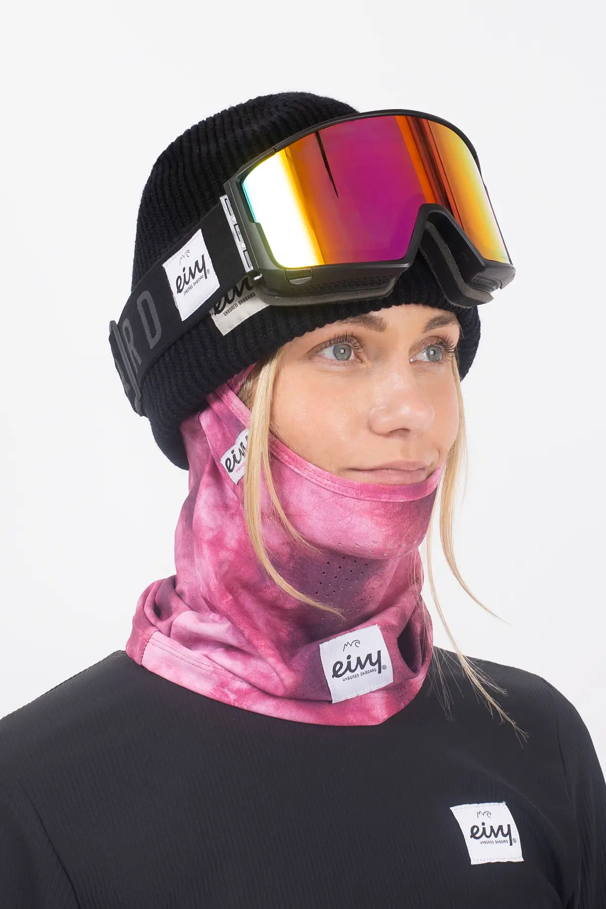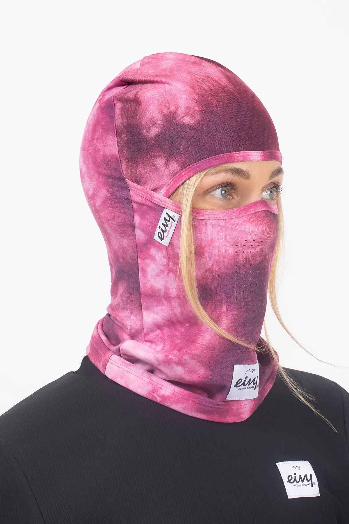 Get yourself the pink tie dyed Hinge Balaclava for full coverage and reliable protection in cold weather. The face-hugging fit stays securely in place under your helmet and goggles, while small breathing holes over the mouth help reduce moisture build-up from exhaling – preventing fog inside the balaclava and your ski goggles. A vertical front seam eliminates pressure points on the forehead for added comfort during snowboarding, skiing, or winter hikes. An essential face mask for your outdoor gear setup.