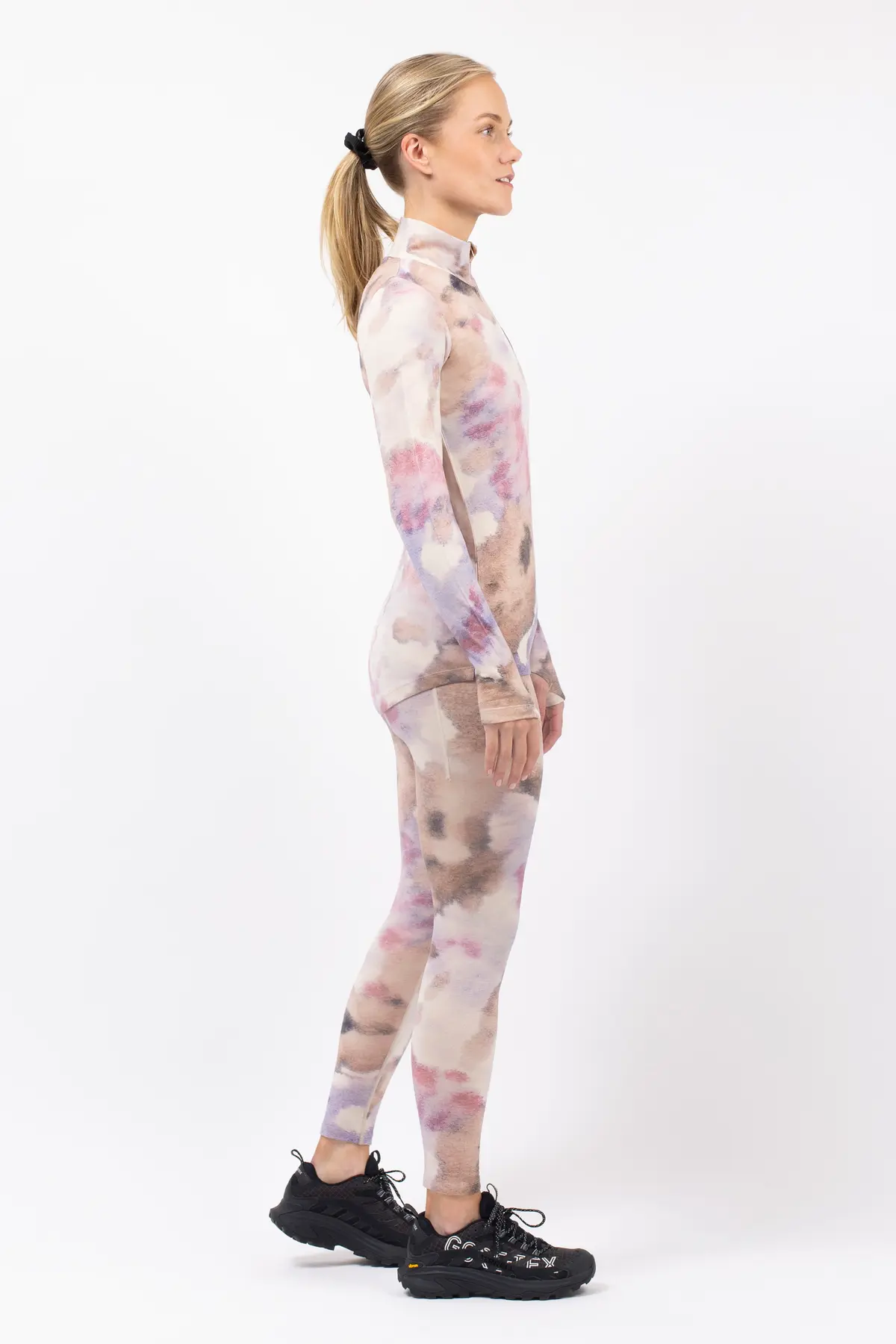 Our aquarelle printed Journey Merino Wool model is a merino wool base layer crafted in a snug, body-hugging fit with a shorter zipped collar. Ideal for the slopes, après-ski, running, and everyday wear – its merino wool construction provides natural insulation and breathability.