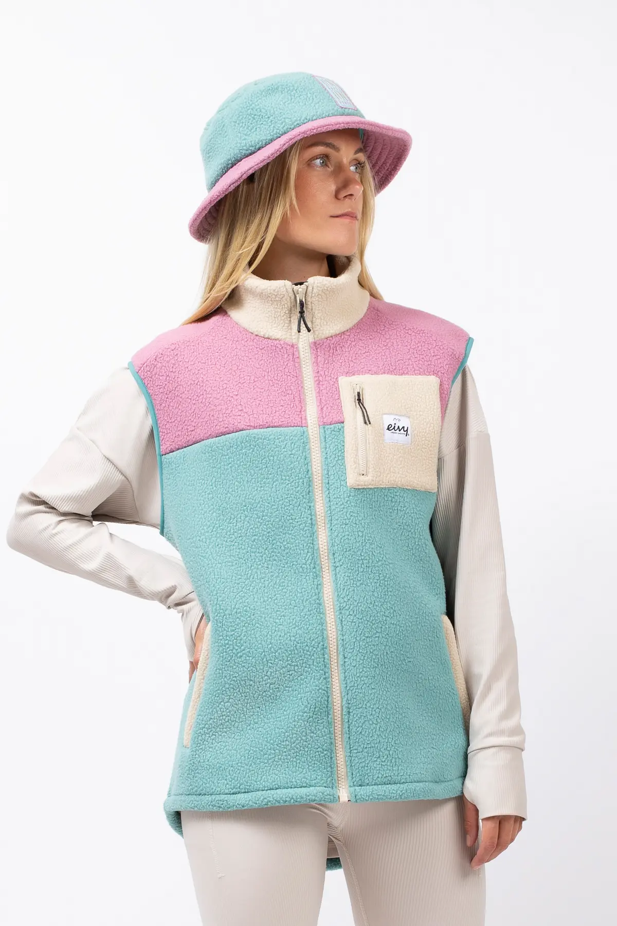 Infinite options on how to use and style this fleece vest, simply packed with multiFUNctionality. Thick and soft sherpa fleece in Miami vibe, premium sized YKK® zipper on the front and regular YKK® zippers on the chest and side pockets. Dropped shoulders, straight waist and a high double layered collar.