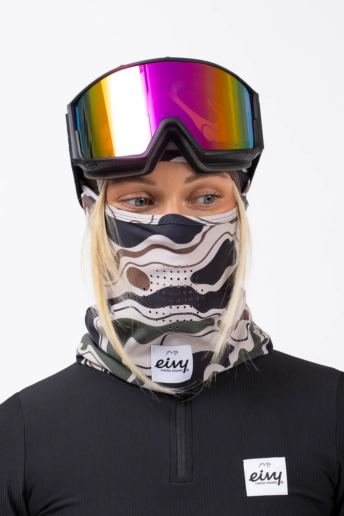 Get yourself a camouflage Hinge Balaclava for that full coverage. Face-hugging fit with small breathing holes over the mouth area to eliminate exhaled moisture in the balaclava and in your goggles. Vertical seam eliminates pressure points on forehead from goggles. Woven front label.