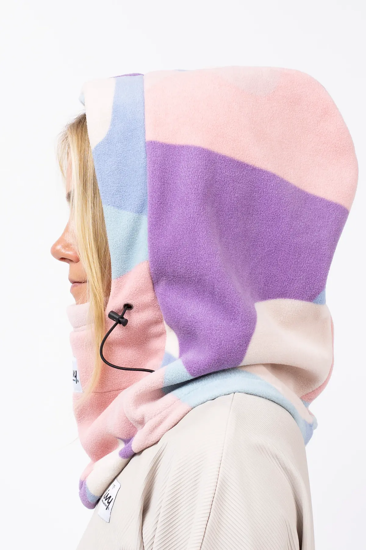 A pastel balaclava made of thick and soft fleece, perfect for cold days on and off the mountain, whether you are on your snowboard, skis or out hiking. Made with a helmet compatible design and two drawstring pullers for dual adjustment.