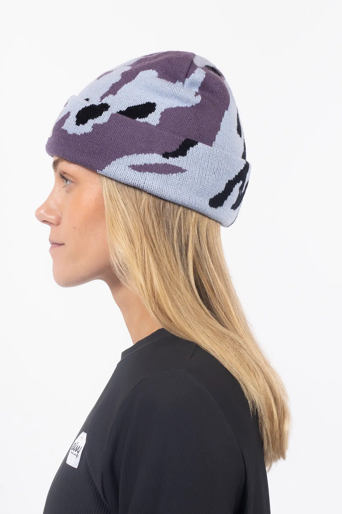 Heavy Jacquard Beanie in a purple print – a thick, knit winter essential made for cold adventures. The sturdy jacquard weave offers warmth and structure, while the slim fit slides easily under helmets.