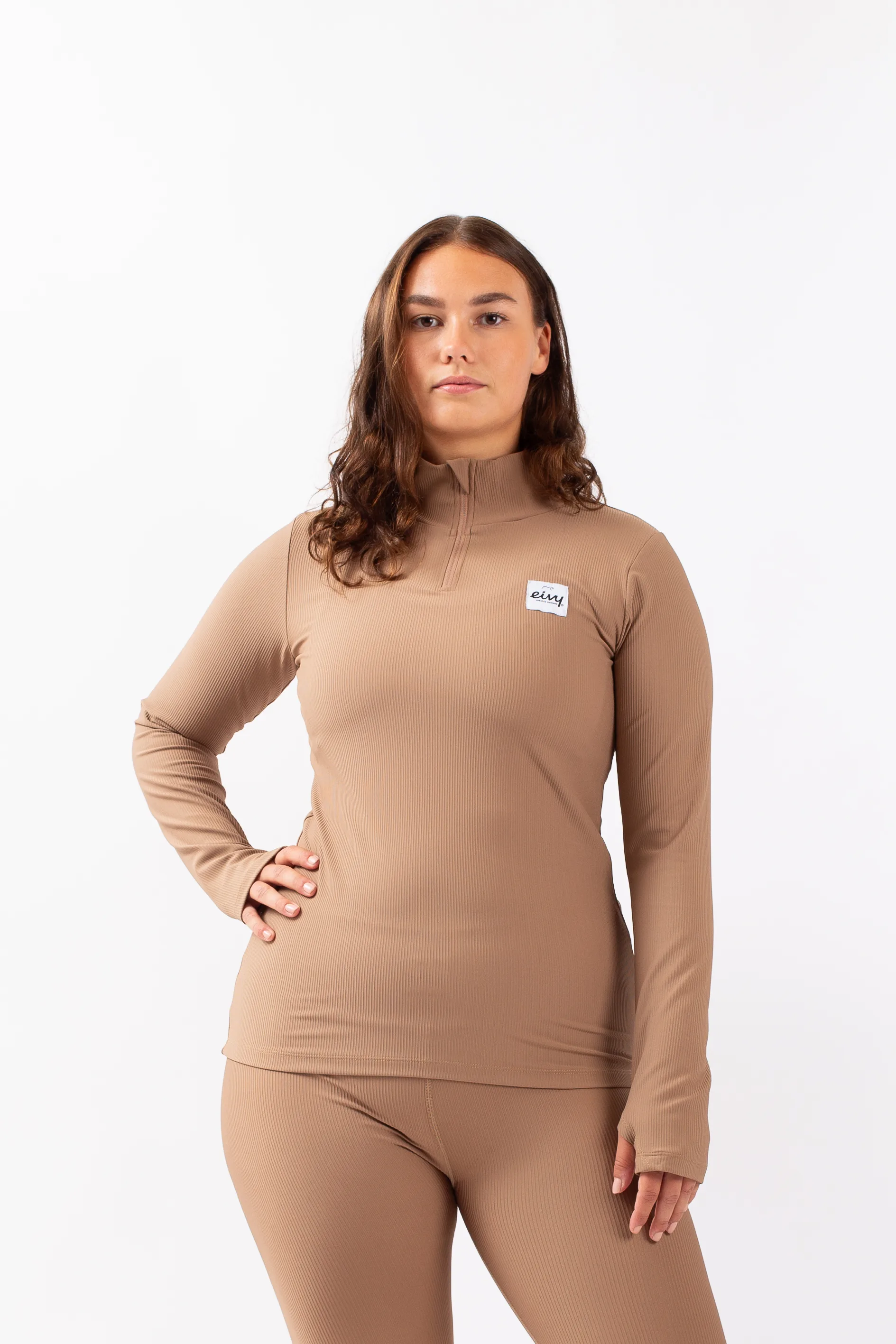 Our brown & ribbed Journey model is a base layer designed in a body-hugging fit with a shorter zipped collar. Fits just as well on the slopes as on the after ski or on the run and in your everyday life. The body-hugging fit allows you to wear multiple layers of clothing on top during the coldest days, and the integrated thumbholes ensure that the sleeves stay in place even when layered over.