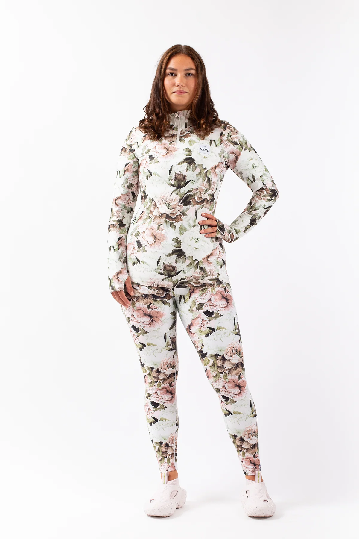 Our flower patterned Journey model is a base layer designed in a body-hugging fit with a shorter zipped collar. Fits just as well on the slopes as on the after ski or on the run and in your everyday life. The body-hugging fit allows you to wear multiple layers of clothing on top during the coldest days, and the integrated thumbholes ensure that the sleeves stay in place even when layered over.